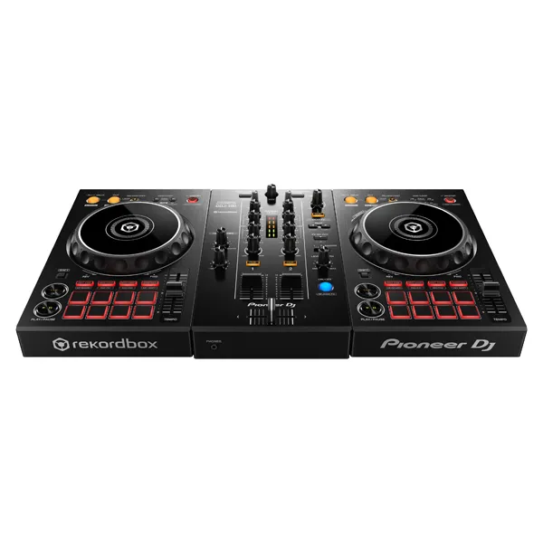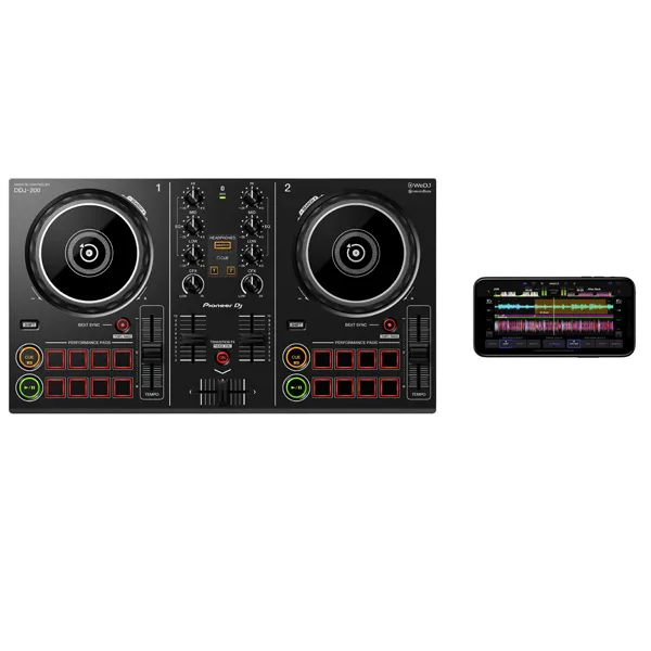 The DDJ-200 is lightweight and portable. Leave the speakers at home and play sound from your smartphone, tablet, or PC/Mac’s audio outputs. No outlet handy? No problem. Power the controller via an external battery.